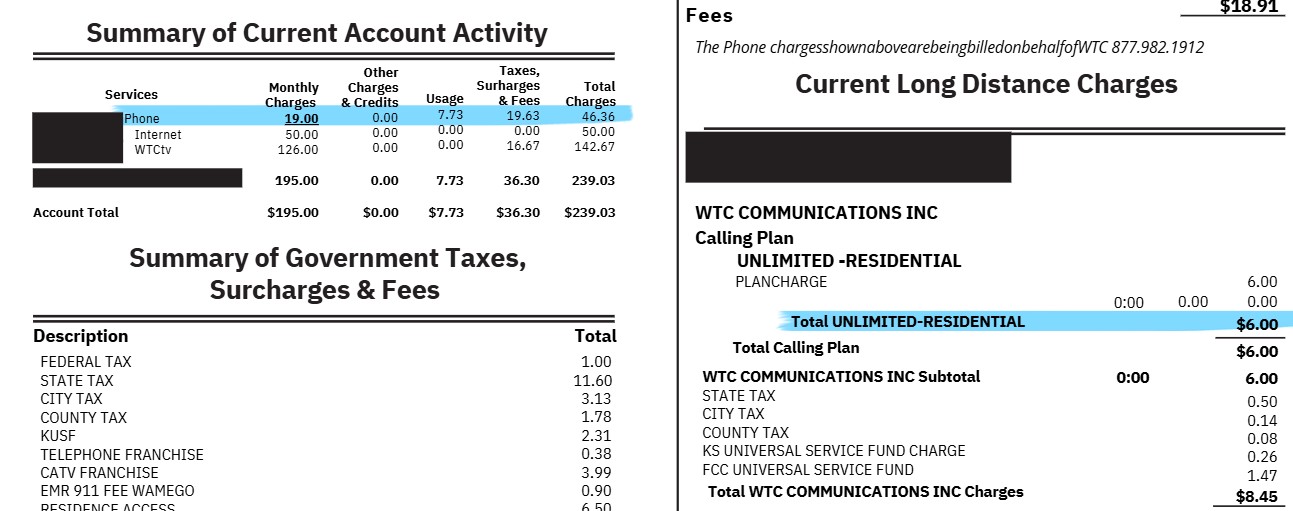 The $6 line item is not an additional or new charge. It’s part of the original $25 and is just shown separately for regulatory purposes and covers the unlimited Long Distance and the calling features included in your plan like Caller ID and Robocall Blocking.